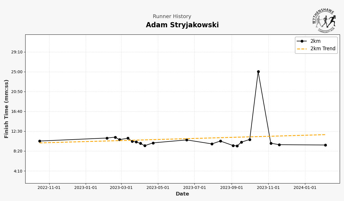 Each runner who has run a few runs have graphs sorted alphabetically by First Name / Middle Name / Surname.